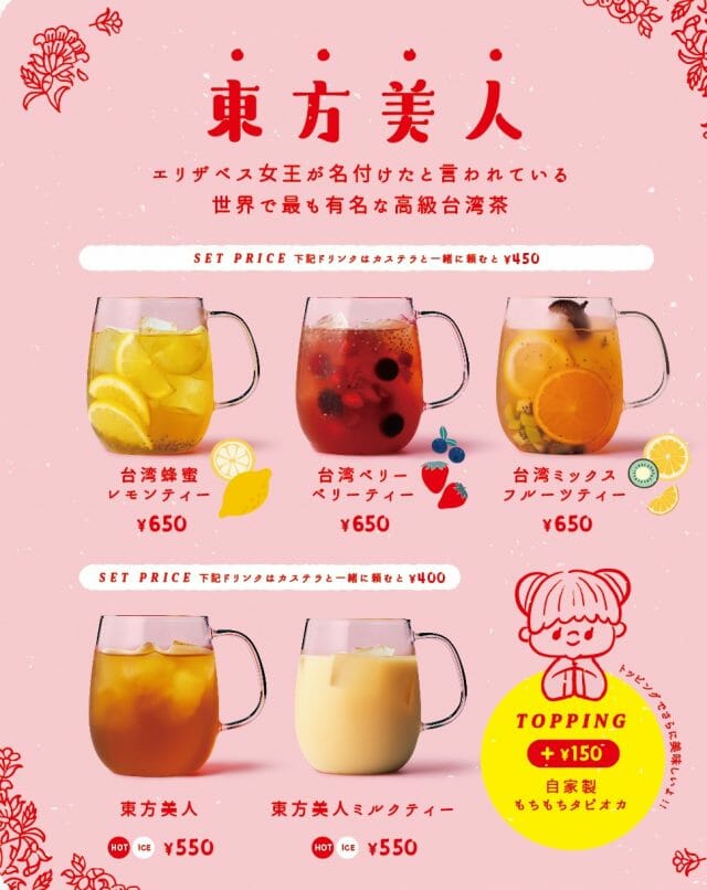 東方美人ミルクティー 550円 (すべて税別)その他ドリンクあり