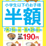 吉野家 夏休み特別企画で小学生以下の子どもの食事が半額に