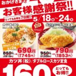 かつや 感謝祭開催 ボリューム満点「カツ丼」と「ダブルロースカツ定食」が160円引きに