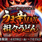 株式会社トリドールジャパンが展開する讃岐うどん専門店「丸亀製麺」では、昨年大好評だった、『うま辛担々うどん』の辛さを選べるキャンペーンを復活させ、『うま辛MAX担々うどん』として4月26日(金)〜7月 ...