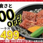 期間・数量限定【和食さと】人気のテイクアウトメニューを特別価格に値下げ!ステーキ丼を499円で販売