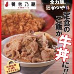 「かつや」で牛丼が食べたい!定食のご飯を元祖居酒屋の牛丼にチェンジできる「養老乃瀧」の養老牛丼を発売