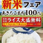待ってました!松屋「新米フェア」新米あきたこまち100%ライスが期間限定の定食全品大盛無料大サービス