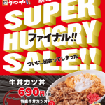 とんかつ専門店「かつや」を展開している株式会社かつや(本社:東京都千代田区/代表:伊藤 永)は、10月11日(金)から「かつや」国内店舗にて”SUPER HUNGRY SALE”ファイナルを実施します ...