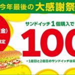 11月1日(金)14時~!サブウェイで今年最後の大感謝祭「サンドイッチ2個目100円キャンペーン」