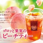 ミニストップ、一度で三度おいしい”ゴロッと果実”のピーチティーが登場。