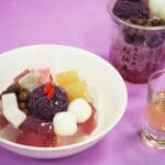 船橋屋“藤まつり”に合わせた“藤色”の商品「天神藤あんみつ」「藤のおしるこ」が亀戸天神前本店に登場!