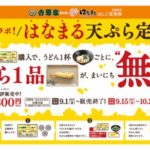 讃岐うどんチェーン「はなまるうどん」を展開する株式会社はなまるは、9月15日(金)より全国の「はなまるうどん」店舗にて、うどんを注文したお客様に天ぷらを一品無料で提供する『はしご定期券』キャンペーンを ...