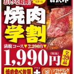焼肉食べ放題が1,990円!学生限定の「焼肉学割」が甘太郎でスタート。