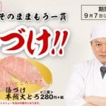 7日間限定で帰ってきた!【かっぱ寿司】倍の二貫で値段はそのまま『倍づけ本鮪大とろ』を販売
