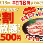 牛角、”学生限定”で「2,500円食べ放題キャンペーン」を期間限定で開催。