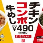 松屋 がっつりにんにく×バター&甘唐辛子×トロ~り半熟玉子!選べる2種類の「チキンコンボ牛めし」が登場