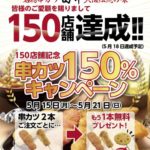 株式会社串カツ田中が運営する串カツ専門店『串カツ田中』は、チェーン店舗数150店舗を記念して2017年5月15日(月)~5月21日(日)に『150店舗達成記念 串カツ 150%キャンペーン』をほぼ全店 ...