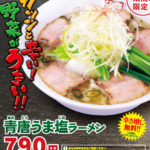 麺食、透明スープの辛いラーメン 「青唐うま塩ラーメン」が期間限定で販売。