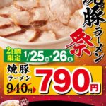 喜多方ラーメン坂内の焼豚ラーメンがお得に食べられるキャンペーンを2日間限定開催。