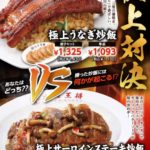 大阪王将、極上うなぎ炒飯VS極上サーロインステーキ炒飯の極上対決が復活。