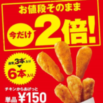 ロッテリア、値段そのままで量が2倍になる「チキンからあげっと」キャンペーンを開催。