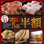「焼肉屋さかい」と「炭火焼肉屋さかい」、人気メニュー5品が半額になるキャンペーンを期間限定で開催。