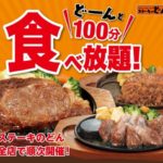100分ステーキ食べ放題「フォルクス」と「ステーキのどん」で開催。