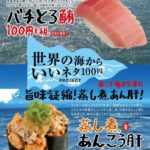 スシロー、世界の海から「バチとろ鮪」「蒸し煮あんこう肝」を100円で提供。